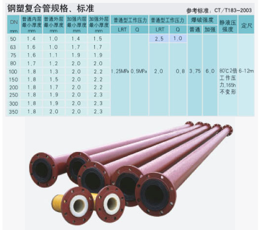 以鋼管為中間層,內外層為聚乙(丙)烯塑料,采用熱溶膠,通過擠出成型方法復合成一體的復合管材